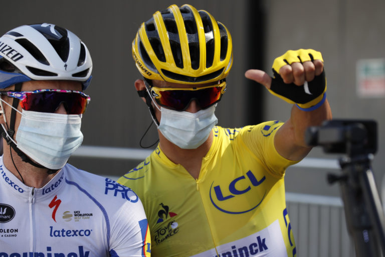 Poliak Michal Kwiatkowski pred štartom 3. etapy Tour de France 2020 z Nice do Sisteron. Nice, 31. august 2020. Foto: Sebastien Nogier, Pool via AP.