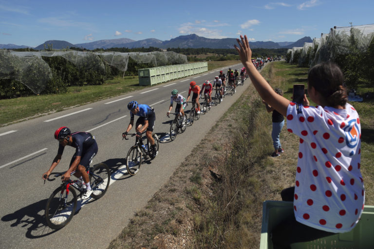 Fanúšikovia počas štvrtej etapy Tour de France 2020 zo Sisteronu na vrchol stúpania Orcières-Merlette. Foto: SITA/AP.