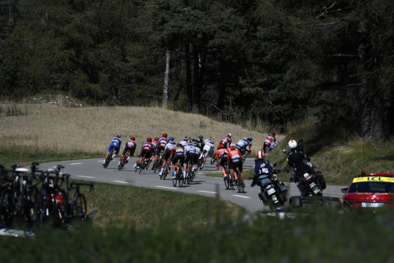 Cyklisti počas štvrtej etapy Tour de France 2020 zo Sisteronu na vrchol stúpania Orcières-Merlette.