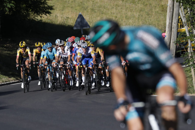 Cyklisti počas štvrtej etapy Tour de France 2020 zo Sisteronu na vrchol stúpania Orcières-Merlette. Foto: SITA/AP.