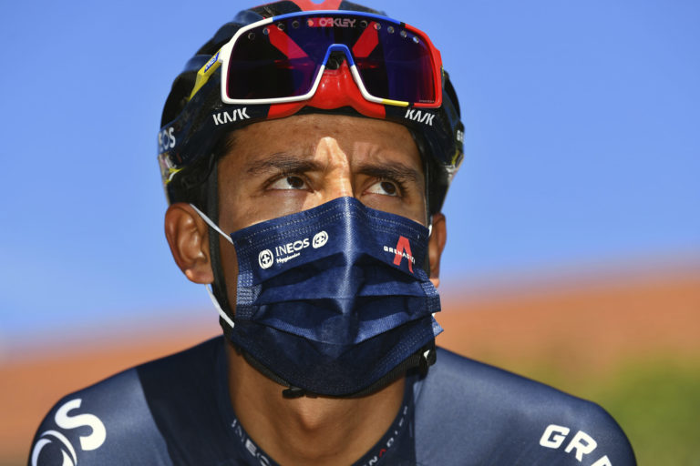 Kolumbijčan Egan Bernal pred štartom štvrtej etapy Tour de France 2020 zo Sisteronu do Orcières-Merlette. Sisteron, 1. september 2020. Foto: Stuart Franklin/ pool via AP Photo.