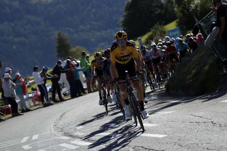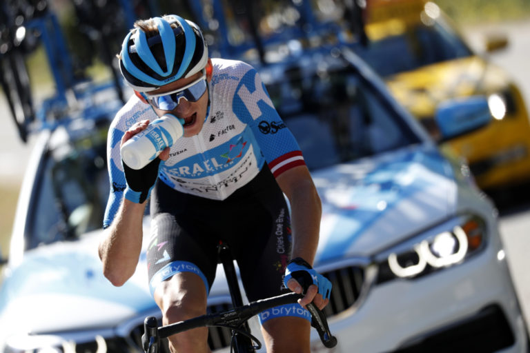 Lotyš Krists Neilands počas štvrtej etapy Tour de France 2020 zo Sisteronu na vrchol stúpania v Orcières-Merlette. Orcières-Merlette, 1. september 2020. Foto: SITA/AP.