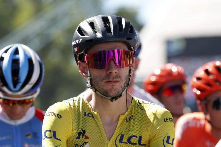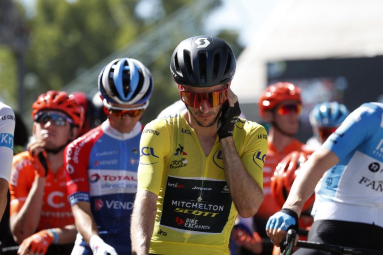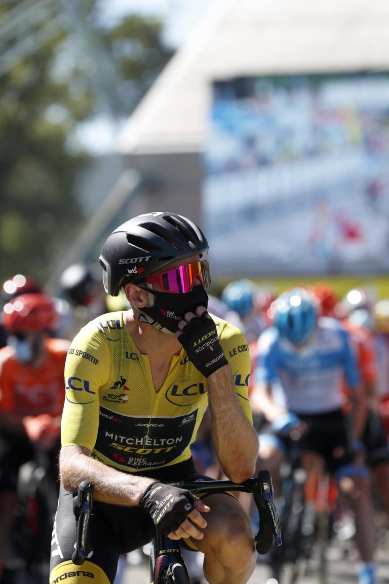 Adam Yates v žltom drese na začiatku 6. etapy Tour de France 2020. 3. september 2020 Foto: SITA/AP