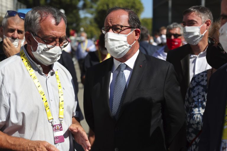 Na 6. etapu Tour de France 2020 sa prišiel pozrieť aj bývalý francúzsky prezident Francois Hollande, vstrede. 3. september 2020 Foto: SITA/AP