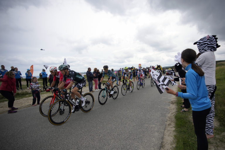 Fanúšikovia počas 1. etapy Tour de France 2021, ktorá sa začína v Breste a končí v Landerneau. 26. júna 2021 Foto: SITA/AP