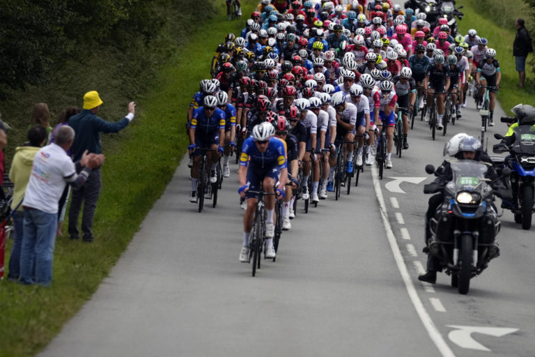 Peletón počas 1. etapy Tour de France 2021, ktorá sa začína v Breste a končí v Landerneau. 26. júna 2021 Foto: SITA/AP