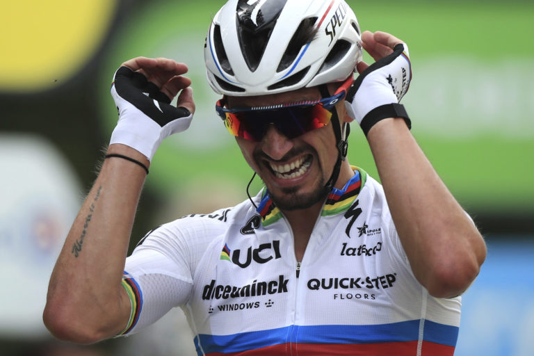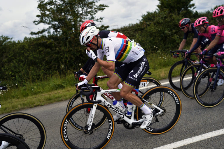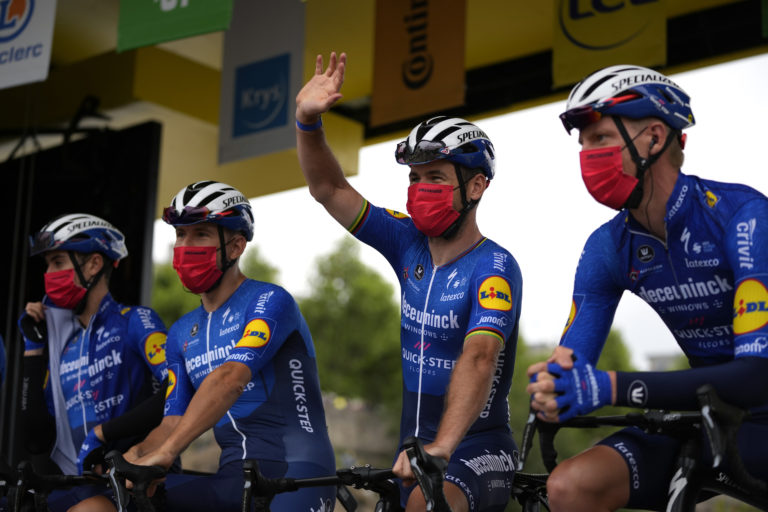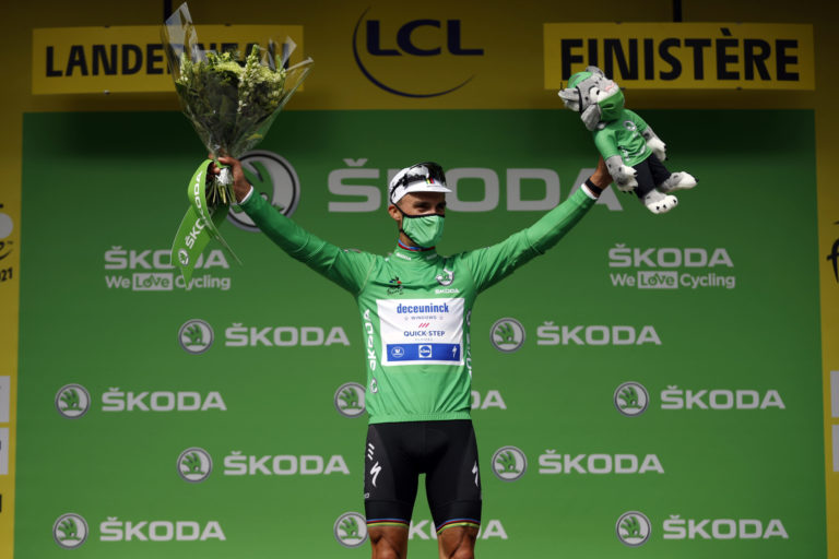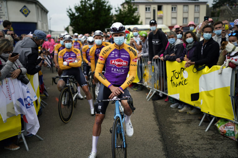 Francúzsky cyklista Julien Alaphilippe počas 1. etapy Tour de France 2021, ktorá sa začína v Breste a končí v Landerneau. 26. júna 2021 Foto: SITA/AP