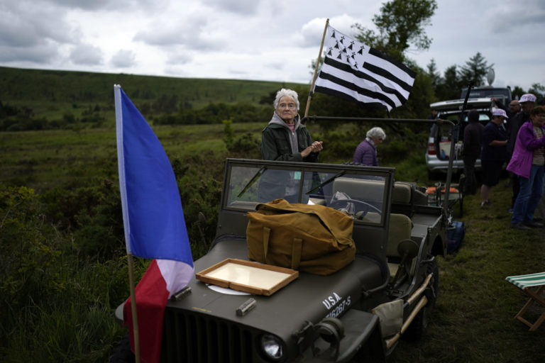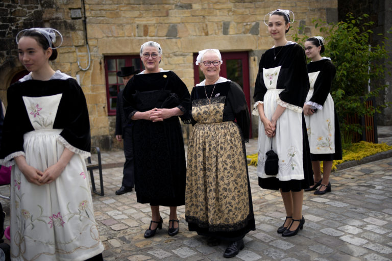Ženy v tradičnom odeve Brestu pred štartom 1. etapy Tour de France 2021 v Breste. 26. júna 2021 Foto: SITA/AP