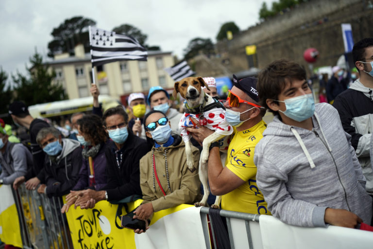 Fanúšikovia pred štartom 1. etapy Tour de France 2021 v Breste. 26. júna 2021 Foto: SITA/AP