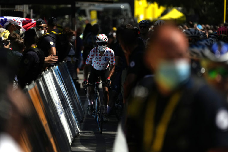 Priebežný líder vrchárskej súťaže Nairo Quintana pred štartom 13. etapy Tour de France z Nimes do Carcassonne (219.9 km). 9. júl 2021. Foto: SITA/AP
