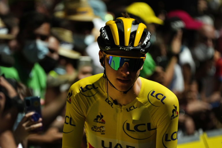 Priebežný líder Tadej Pogačar pred štartom 13. etapy Tour de France z Nimes do Carcassonne (219.9 km). 9. júl 2021. Foto: SITA/AP
