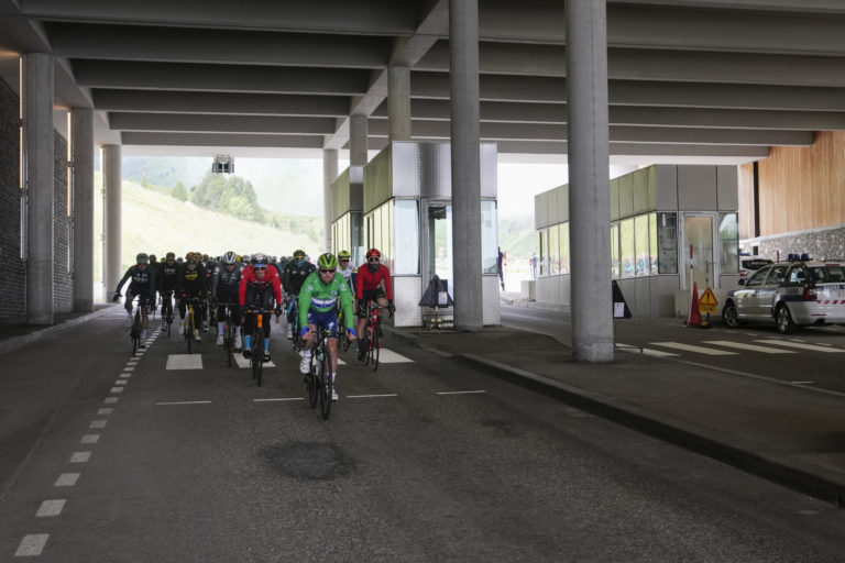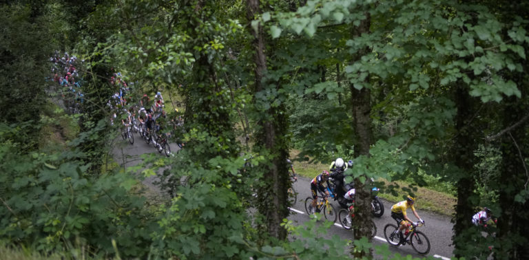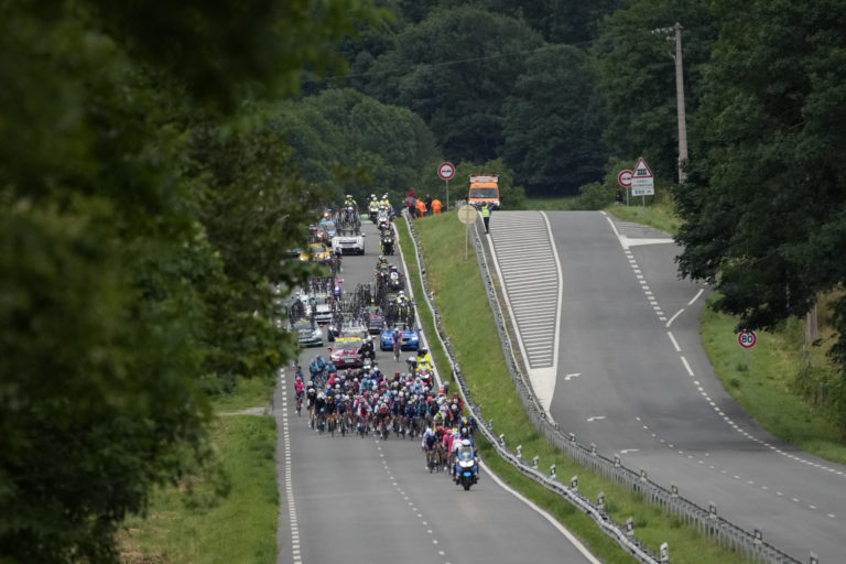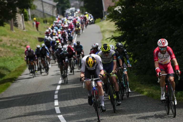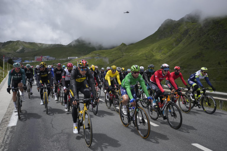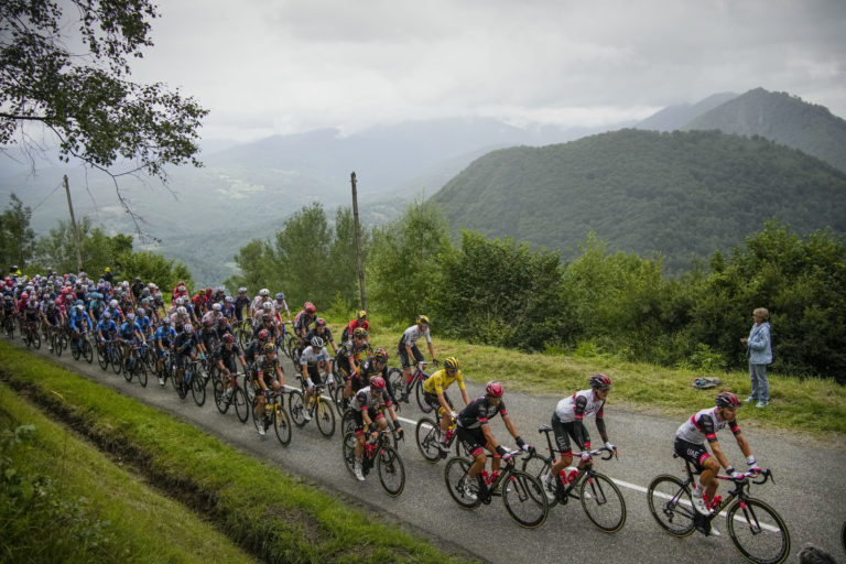 Pelotón počas 16. etapy na Tour de France, ktorá vedie z Pas De La Case do Saint Gaudens. 13. júl 2021 Foto: SITA/AP