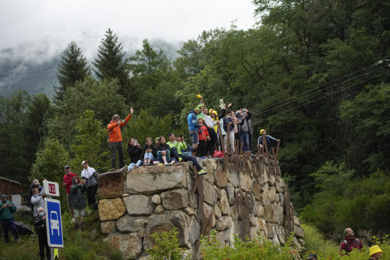 Fanúšikovia mávajú na cyklistov počas 16. etapy na Tour de France Pas De La Case do Saint Gaudens. 13. júl 2021 Foto: SITA/AP