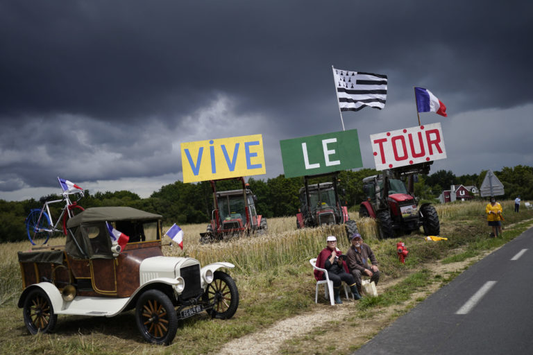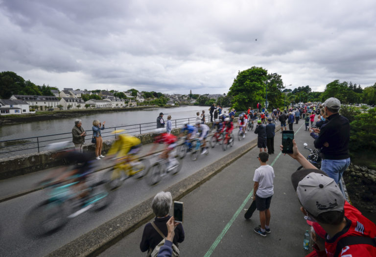 Fanúšikovia počas 3. etapy Tour de France 2021 z Lorientu do Pontivy. Foto: SITA/AP.