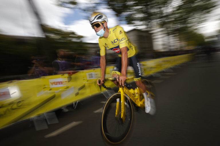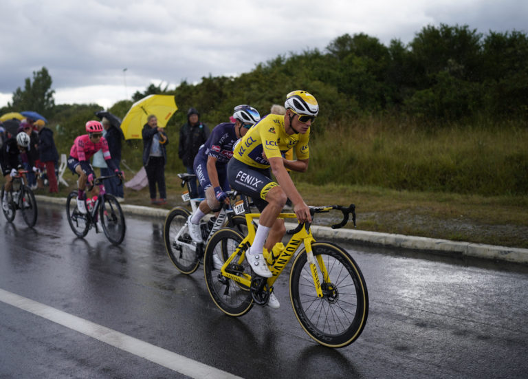 Slovinec Tadej Pogačar počas 3. etapy Tour de France 2021 z Lorientu do Pontivy (182,9 km). Foto: SITA/AP.