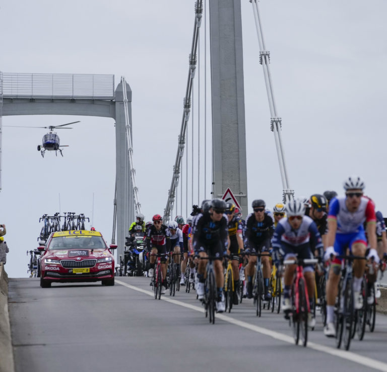 Cyklisti počas 3. etapy Tour de France 2021 z Lorientu do Pontivy. Foto: SITA/AP.