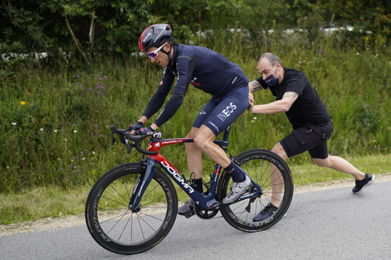 Austrálčan Richie Porte počas 3. etapy Tour de France 2021 z Lorientu do Pontivy (182,9 km). Foto: Chris Graythen/Pool Photo via AP.