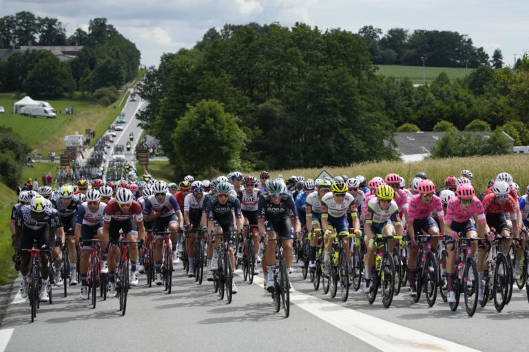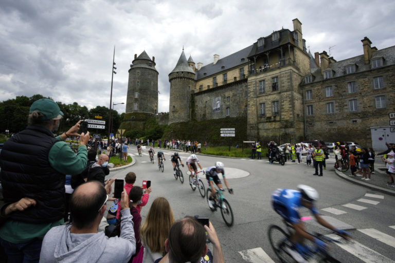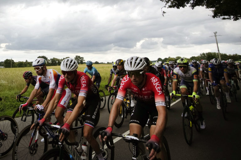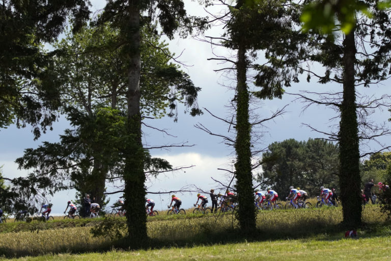 Cyklisti počas 4. etapy na Tour de France z Redonu do Fougéres. 29. júna 2021 Foto: SITA/AP