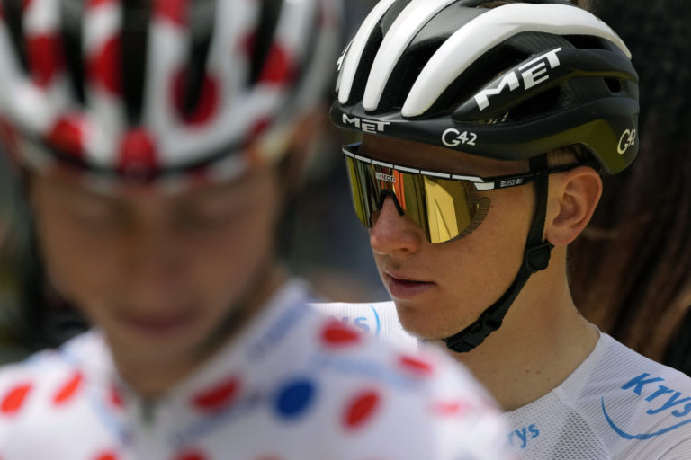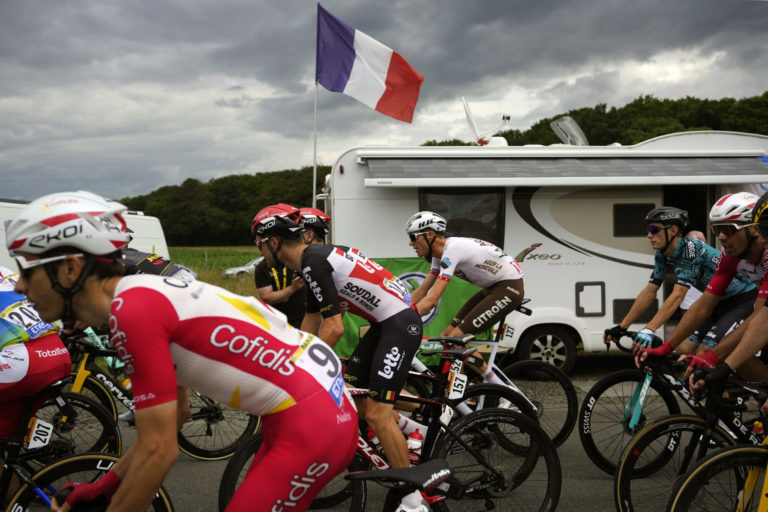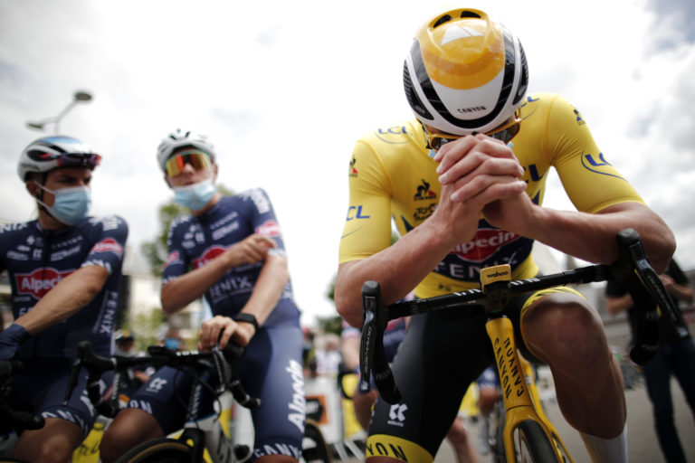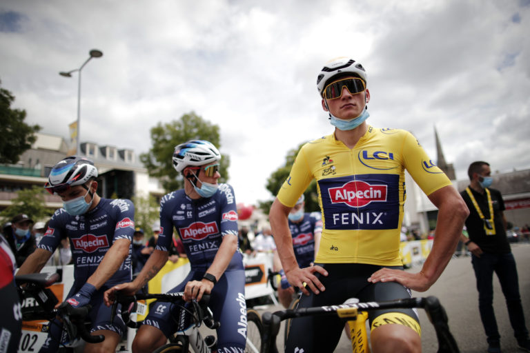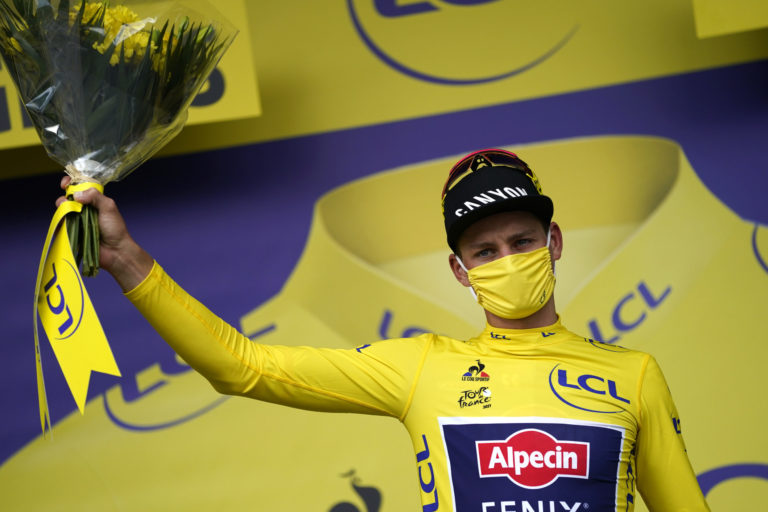 Žltý dres lídra pretekov si udržal Mathieu Van Der Poel z tímu Alpecin-Fenix, ktorý skončil dvanásty. 29. júna 2021. Foto: SITA/AP