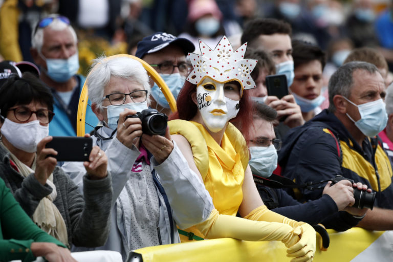 Fanúšikovia pred začiatkom 4. etapy na Tour de France z Redonu do Fougéres. 29. júna 2021 Foto: SITA/AP