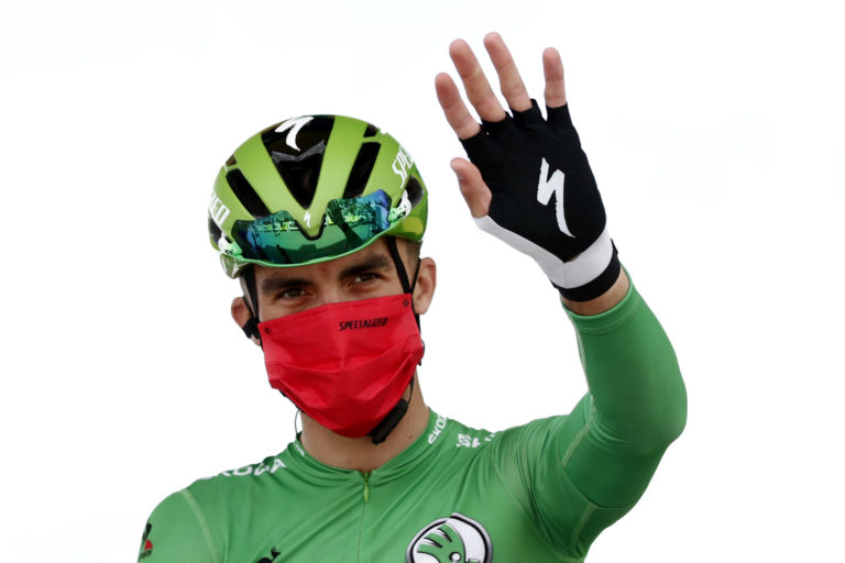 Francúzsky cyklista Julian Alaphilippe v zelenom drese pred začiatkom 4. etapy na Tour de France z Redonu do Fougéres. 29. júna 2021 Foto: SITA/AP