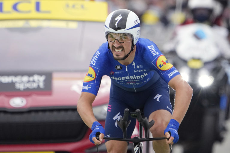 Francúz Julian Alaphilippe prechádza cieľom 5. etapy Tour de France. 30. júna 2021 Foto: SITA/AP.