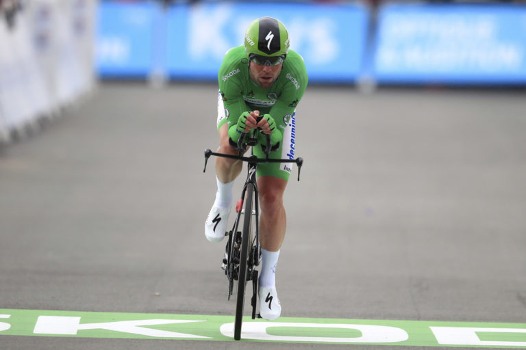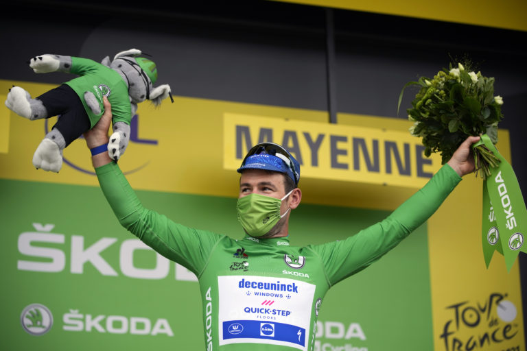 Brit Mark Cavendish si po 5. etape Tour de France oblieka zelený dres. 30. jún 2021. Foto: SITA/AP.