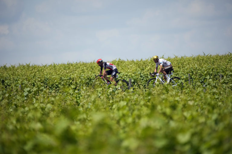 Belgičania Thomas De Gendt (vľavo) a Greg Van Avermaet v úniku Cyklisti počas 6. etapy Tour de France z Tours do Chateauroux. Foto: SITA/AP