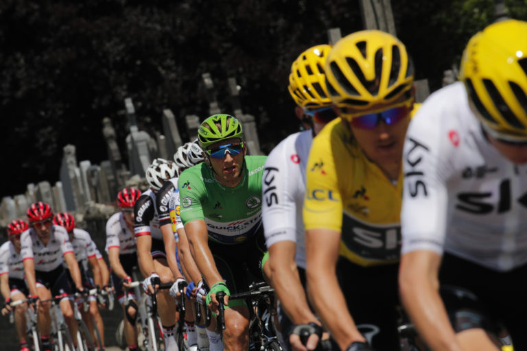 Nemecký cyklista Marcel Kittel z tímu Quick-Step Floors (v zelenom) počas tretej etapy 104. ročníka Tour de France. Foto: SITA/AP.