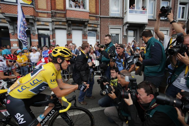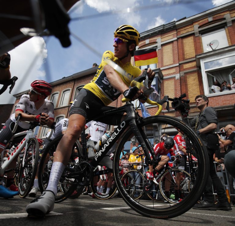 Britský cyklista Geraint Thomas pred štartom tretej etapy 104. ročníka Tour de France, ktorá merala 212,5 km so štartom vo Vievers a cieľom v Longwy. Vievers, 3. júl 2017. Foto: SITA/AP.