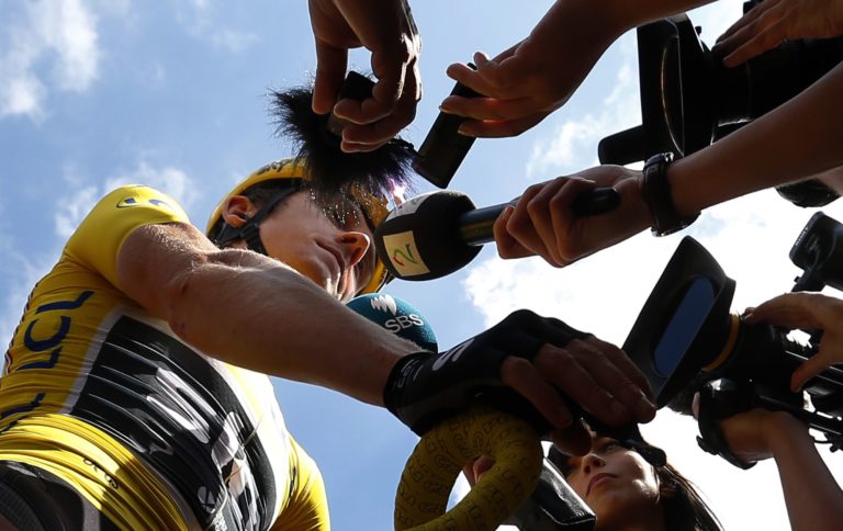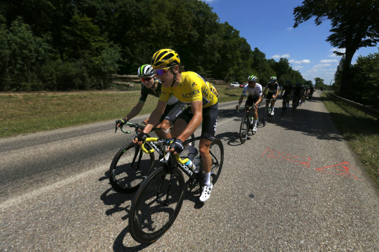 Britský cyklista Chris Froome z tímu Sky počas štvrtej etapy 104. ročníka Tour de France z Mondorf-les-Bains do Vittelu (207.5 km). Foto: SITA/AP.