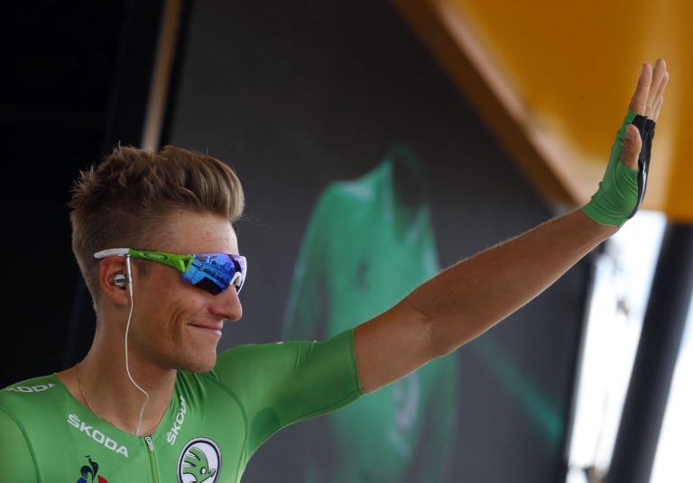 Nemecký cyklista Marcel Kittel z tímu Quick-Step Floors pred štartom štvrtej etapy 104. ročníka Tour de France z Mondorf-les-Bains do Vittelu. Mondorf-les-Bains,4. júl 2017. Foto: SITA/AP.
