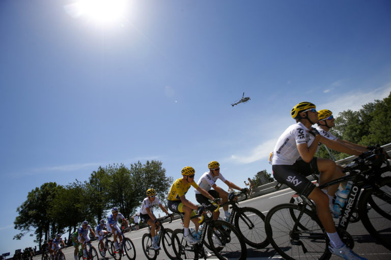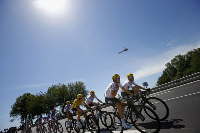 Britský cyklista Chris Froome z tímu Sky (v žltom) počas šiestej etapy 104. ročníka Tour de France z Vesoulu do Troyes (216 km). Foto: SITA/AP.