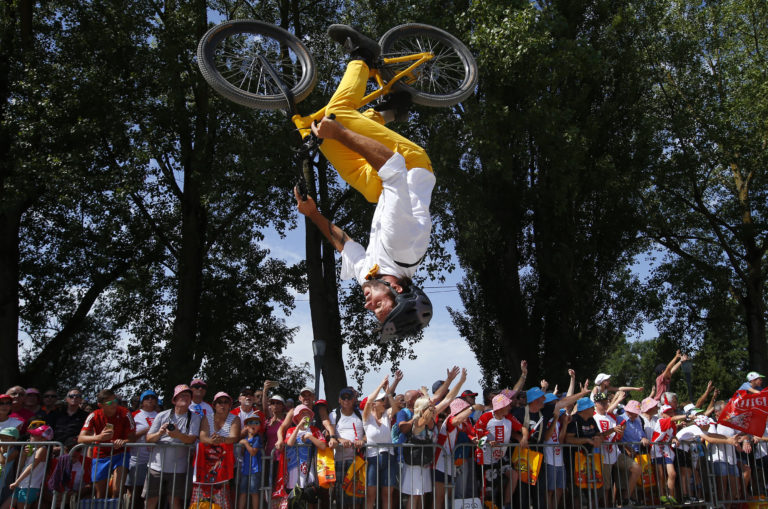 Mladý jazdec na bicykli bmx na začiatku ôsmej etapy Tour de France. 8. júl 2017 Foto: SITA/AP
