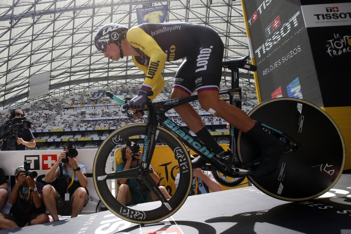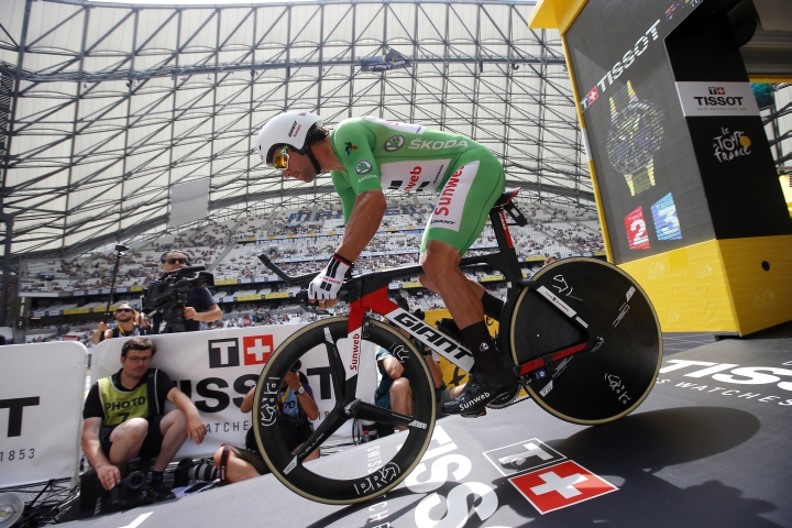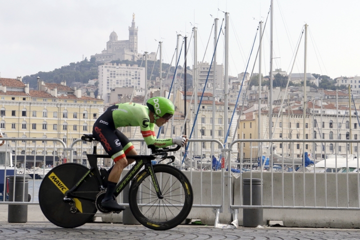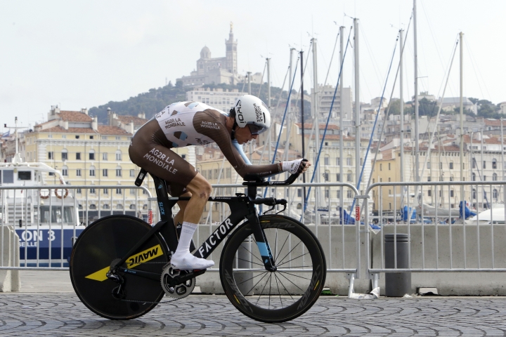 Austrálčan Michael Matthews počas 22,5 km dlhej časovky 104. ročníka Tour de France v Marseille. Foto: SITA/AP