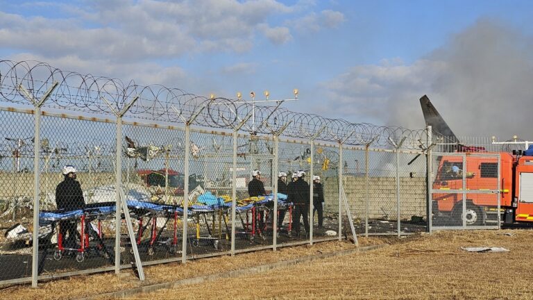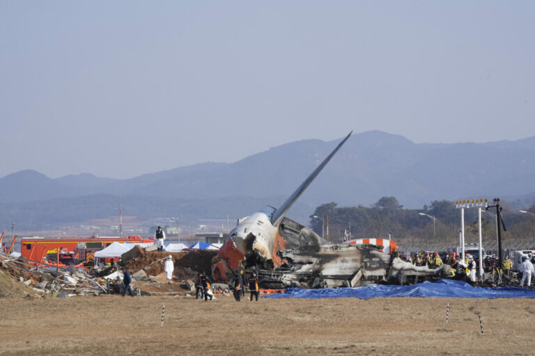 Trosky lietadla, ktoré havarovalo na letisku v juhokórejskom meste Muan. Muan, 29. december 2024. Foto: See Dae-yun/Yonhap via AP