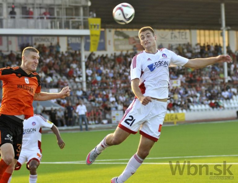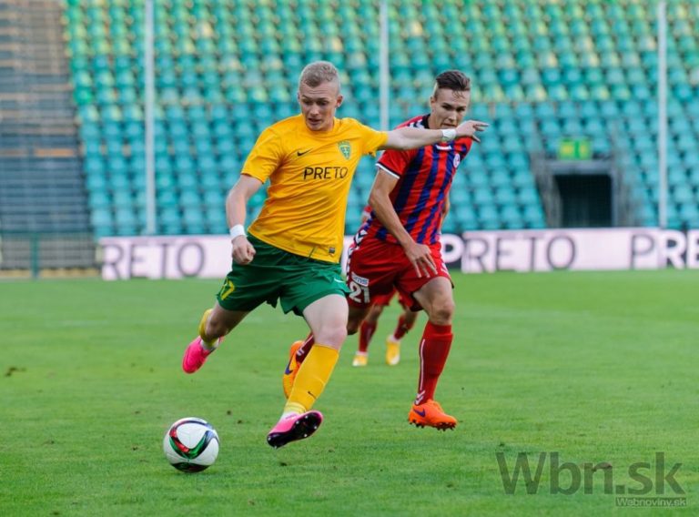 Zľava: Michal Škvarka (MŠK Žilina) počas futbalového zápasu 6. kola jesennej časti sezóny 2015/2016 Fortuna ligy medzi MŠK Žilina - FK Senica. Žilina, 23. august. Foto: SITA/Milo Fabian