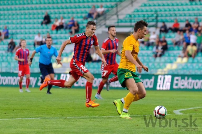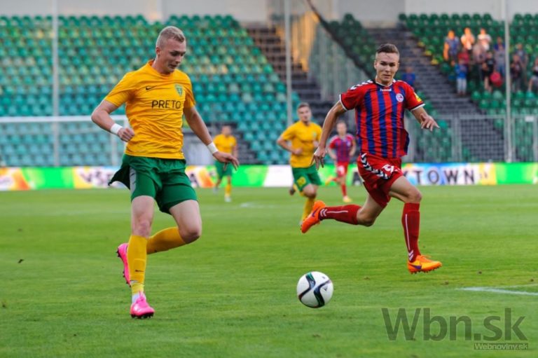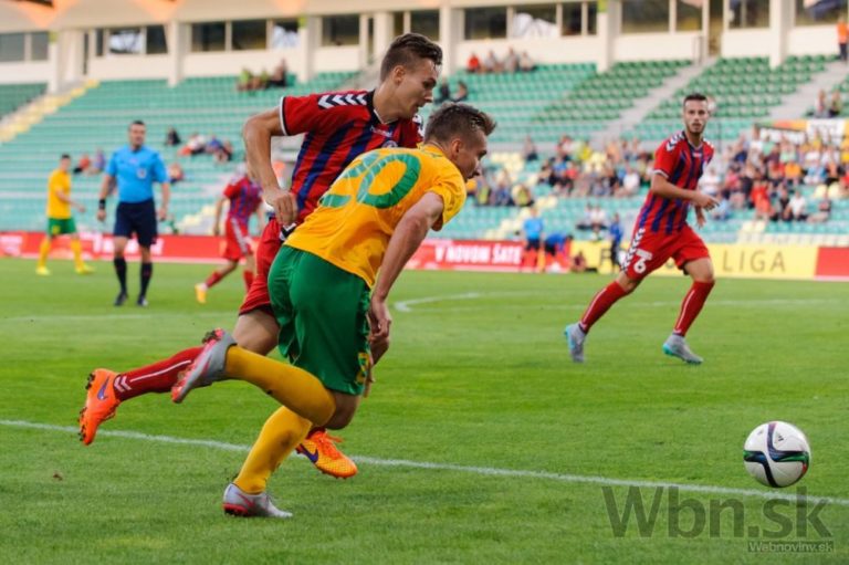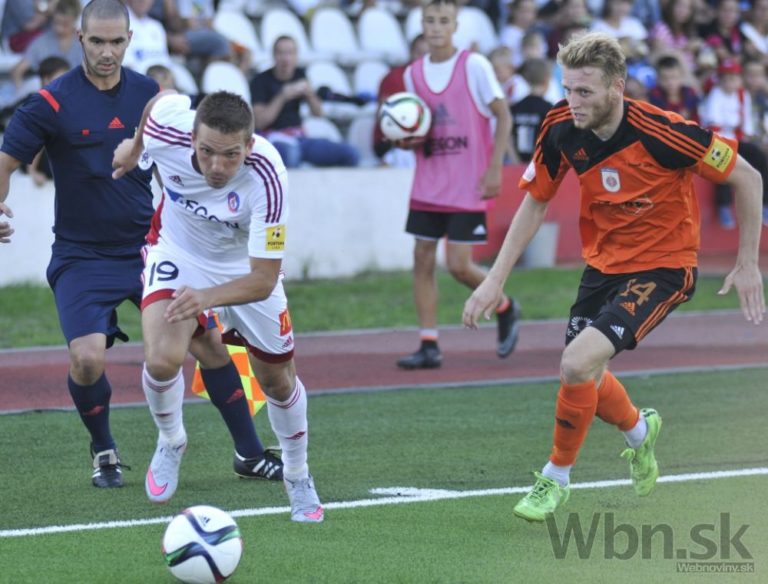 Zľava: Dávid Guba z AS Trenčín a Lukáš Lupták z MFK Ružomberok počas 6. kola jesennej časti Fortuna ligy 2015/2016 v zápase medzi AS Trenčín a MFK Ružomberok. Trenčín, 23. august 2015. Foto: SITA/Tomáš Somr