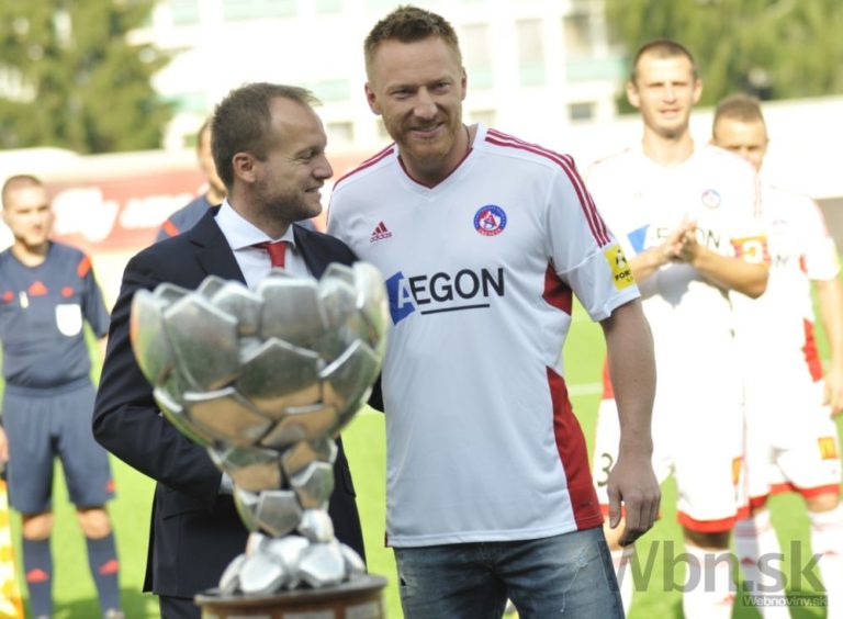 Sprava: Hokejista Marián Hossa a generálny riaditeľ AS Trenčín Robert Rybníček pred 6. kolom jesennej časti Fortuna ligy 2015/2016 v rámci zápasu medzi AS Trenčín a MFK Ružomberok. Trenčín, 23. august 2015. Foto: SITA/Tomáš Somr