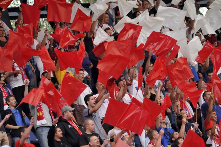 Fanúšikovia AS Trenčín počas prvého zápasu druhého predkola futbalovej Európskej ligy UEFA medzi AS Trenčín (SR) - FK Vojvodina Novi Sad (Srbsko). Dubnica nad Váhom, 17. júl 2014. Foto: SITA/Tomáš Somr