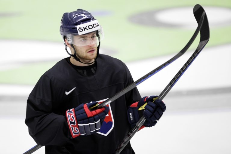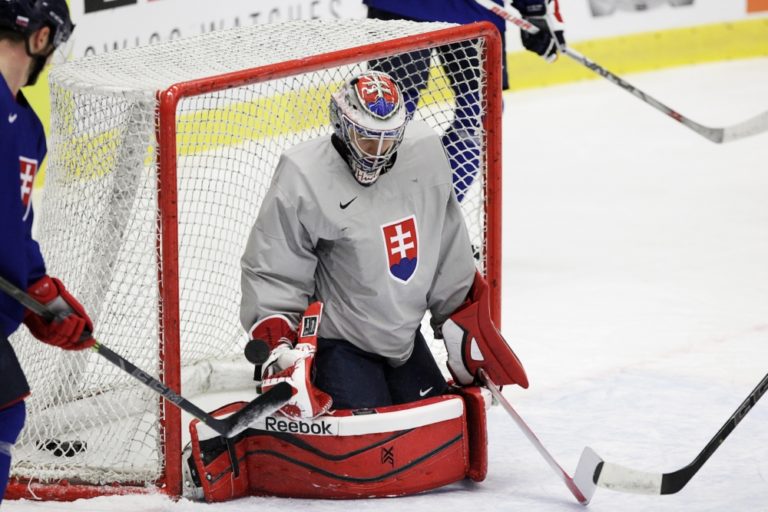 Adam Jánošík počas tréningu slovenskej hokejovej reprezentácie pred zápasom USA - Slovensko na majstrovstvách sveta v ľadovom hokeji 2015 v Českej republike. Ostrava, Česká republika, 11. máj 2015. Foto: SITA/Ján Viazanička