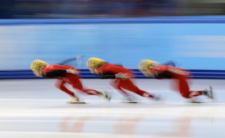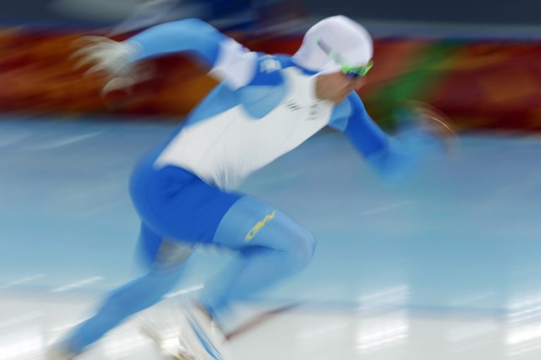 Fínsky rýchlokorčuliar Mika Poutala počas pondelňajších pretekov na 500 metrov. Foto: SITA/AP