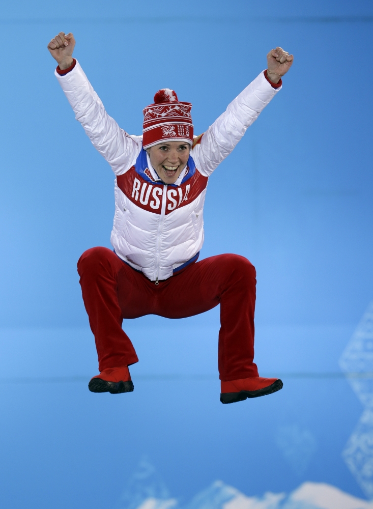 Radosť ruskej krasokorčuliarky Olgy Grafovej, ktorá si vybojovala bronzovú medailu v pretekoch na 3000 metrov. Foto: SITA/AP