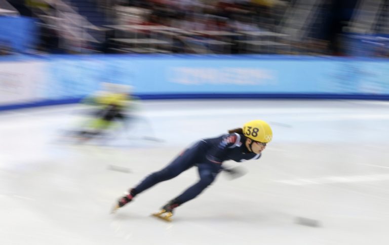 Číňanka Park Seung-hi počas pondelňajších pretekov na 500 metrov Foto: SITA/AP