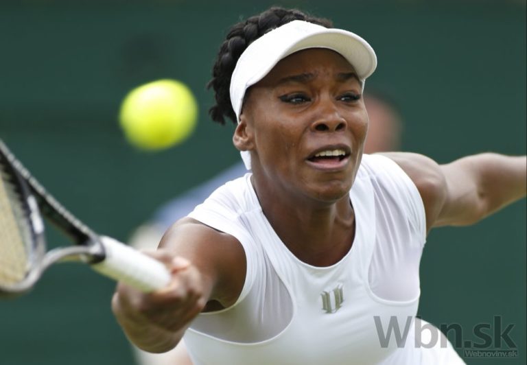 Venus Williamsová počas zápasu 2. kola Wimbledonu, v ktorom si poradila s Kurumi Narovou 7:6 (4), 6:1. Foto: SITA/AP