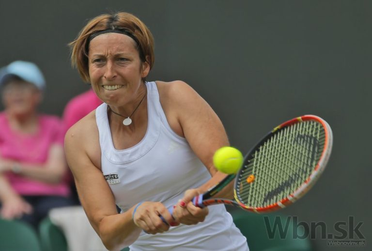 Yvonne Meusburgerová počas zápasu druhého kola Wimbledonu, v ktorom podľahla Na Li 2:6, 2:6. Foto: SITA/AP
