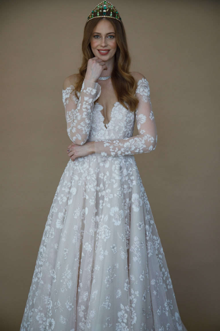 Miss Slovensko 2019 Frederika Kurtulíková v šatách zo Svadobného salónu WEM počas stretnutia novinárov s novým riaditeľom projektu Miss Slovensko a módnym dizajnérom Michaelom Kováčikom a víťazkami 24. ročníka pred ich odchodom na svetové suťaže Miss World, Miss International a Miss Supranational. Bratislava, 22. október 2019. Foto: SITA/Branislav Bibel