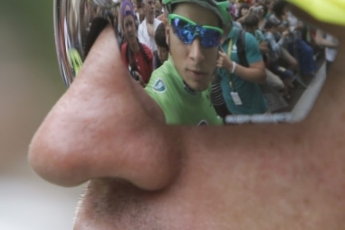 Kolumbijský cyklista Nairo Quintana v cieli 13. etapy Tour de France, ktorou bola individuálna časovka na 27,2 km so štartom a cieľom v Pau. Pau, 19. júla 2019. Foto: SITA/AP