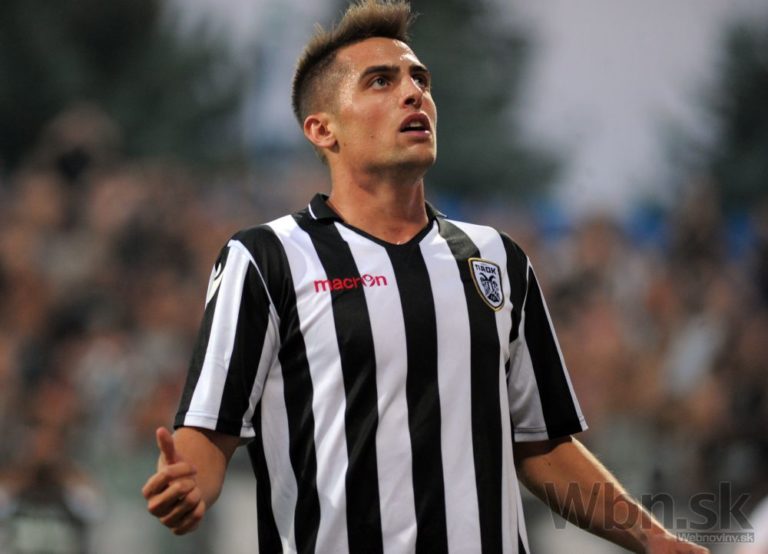 Róbert Mak z PAOK Solún v odvetnom zápase 3. predkola Európskej ligy FC Spartak Trnava (SR) - PAOK Solún (Gréc.). Zlaté Moravce, 6. august 2015. Foto: SITA/Martin Havran