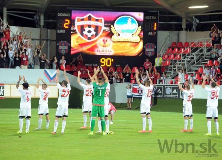 Hráči FC Spartak Trnava po skončení prvého zápasu 2. predkola Európskej ligy 2015/2016 medzi FC Spartak Trnava (SR) – Linfield FC (Sev. Ír.). Zlaté Moravce, 16. júl 2015. Foto: SITA/Martin Havran